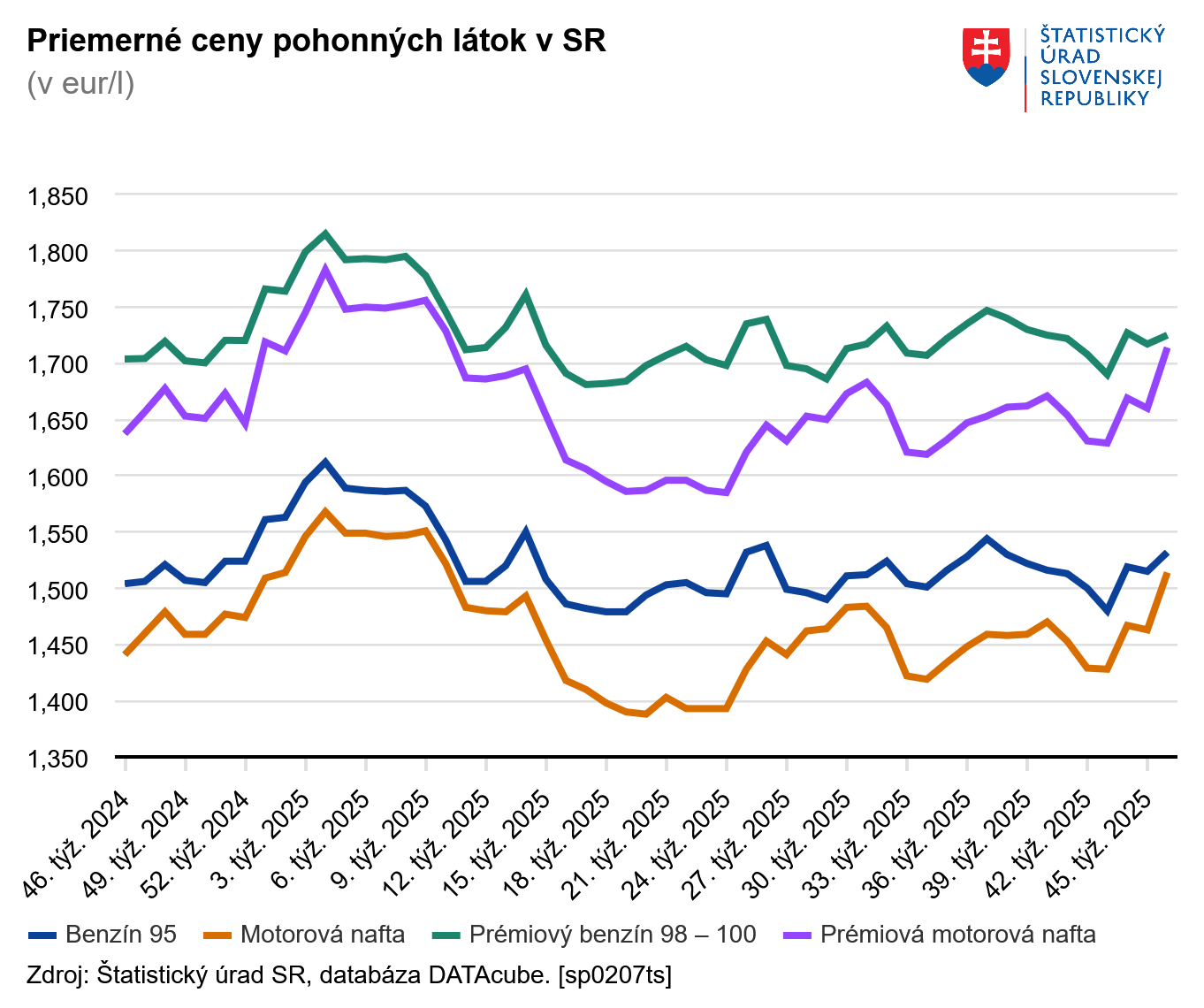 Spotrebiteľské ceny všetkých najpoužívanejších palív pre motorové vozidlá počas 46. týždňa stúpli.